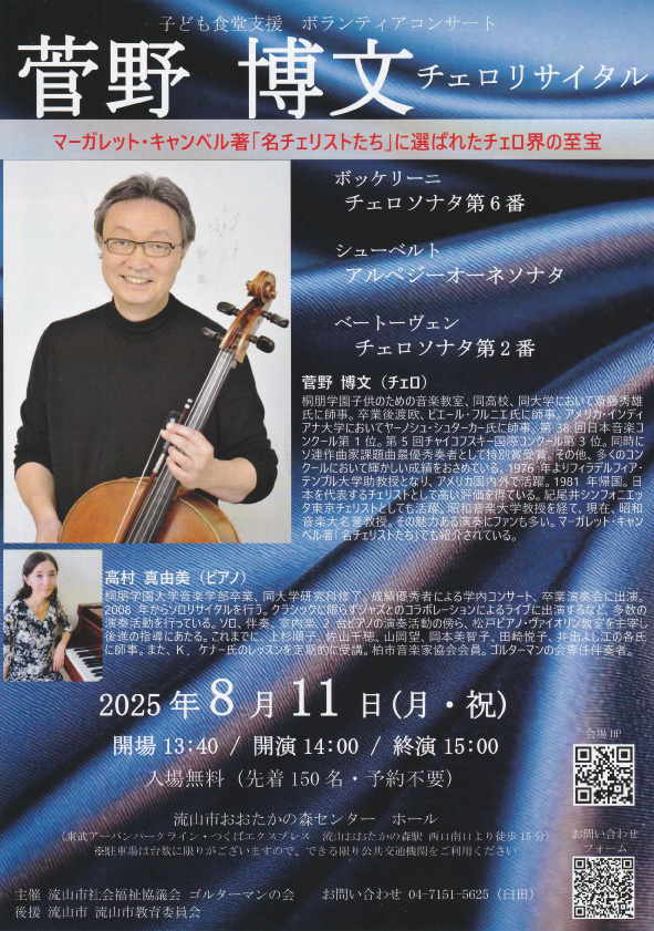 菅野先生はチャイコフスキーコンクール第3位でマーガレット・キャンベル著「名チェリストたち」でも紹介されている世界的チェリストです。