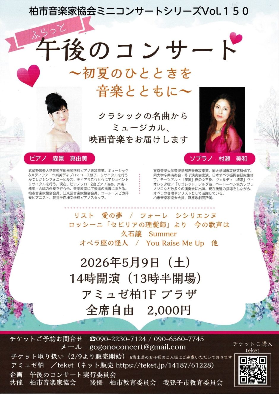 2026 年 5 月 9日(土)14:00 開演/13:30 開場 アミュゼ柏プラザ 全自由席 2,000 円