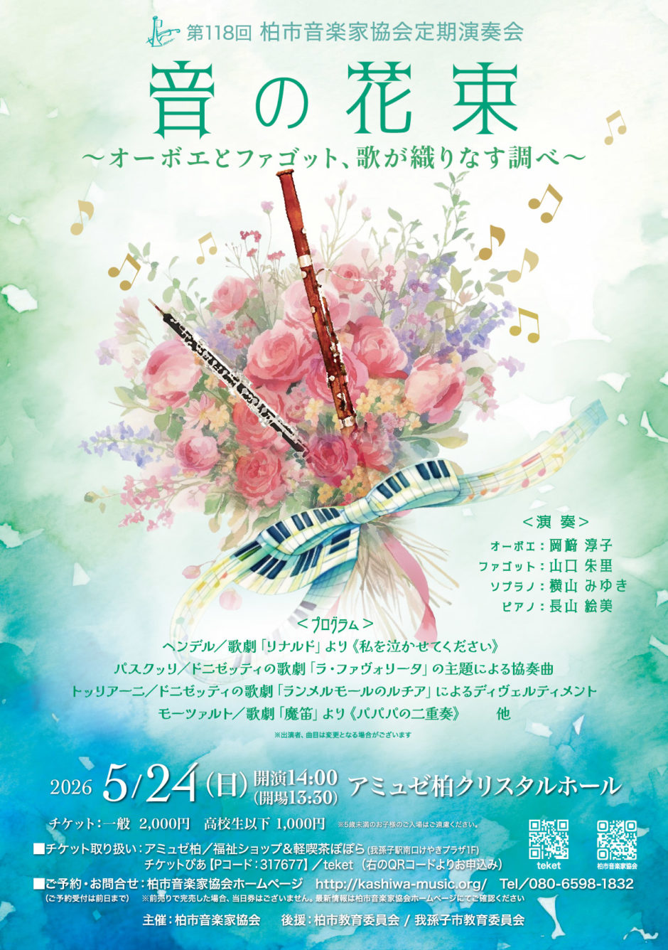 柏市音楽家協会の第118回定期演奏会が5月24日(日)に開催されます。